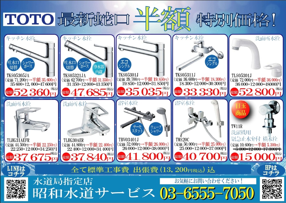 | 混合水栓の交換 | 材料費別 ¥12,000 |