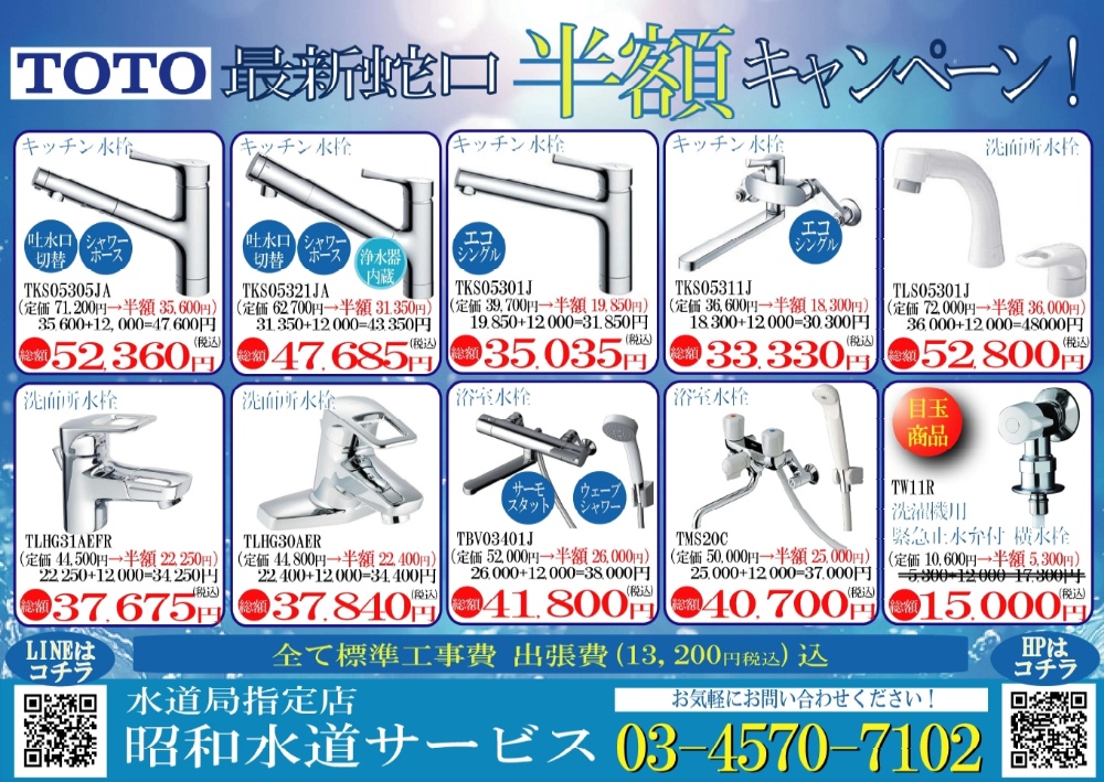 | 混合水栓の交換 | 材料費別 ¥12,000 |